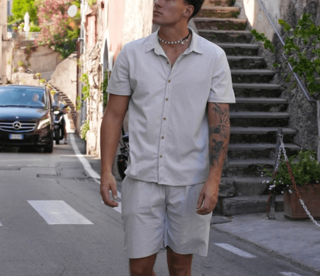 Werten Sie Ihre Garderobe auf mit unserem Cord-Set , bei dem lässiger Charme auf sportliche Vielseitigkeit trifft. Dieses Set aus leichtem Polyester bietet eine perfekte Passform, die Ihnen Komfort bietet und gleichzeitig mühelosen Stil ausstrahlt. Dieses Set ist ideal für Sommerausflüge, Strandtage oder einen gemütlichen Spaziergang in der Stadt und ein Must-have für warme Mode.