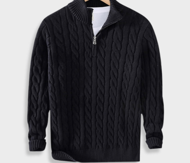 Crafted from premium cotton, this casual zip-up sweater features a classic cable knit design, offering both comfort and timeless appeal.
